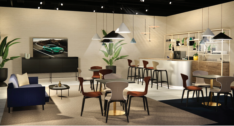 The inviting Customer Hospitality Area as a central element between the Welcome Area and the Service Area invites customers to linger and refresh themselves during their stay in the BMW showroom.