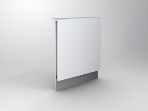 Substructure in wood, front and top panel covered with 4 mm opti-white glass.
