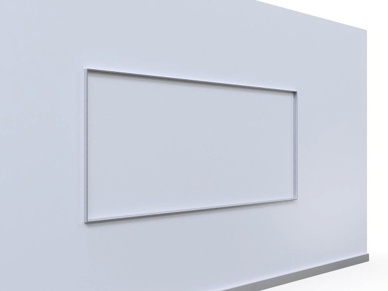 Aluminum profile holder for clamping textile communication media. The frames are mounted directly onto the on-site walls. Textile motifs must be ordered separately.