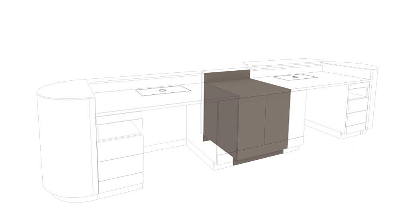 The modular multifunctional counter, with a straight front and rounded finishing elements, provides a high-quality and aesthetic overall impression, where clear forms meet a reduced design and well-thought-out CI equipment. Thanks to the large number of different elements, it is possible to configure the counter according to your own needs.