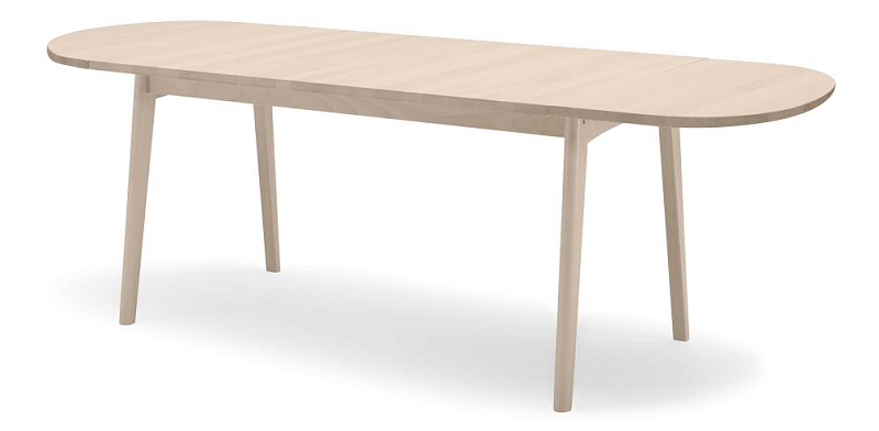 The CH006 table measuring 138 x 90 cm by designer Hans J. Wegners dates from 1982 and demonstrates the visionary approach to functional design. With its sturdy pull-out frame with built-in handles and two loosely attached extension plates with rounded edges, the table can be extended to 236x90cm. The table is therefore versatile and can be easily adapted for both smaller and larger groups.