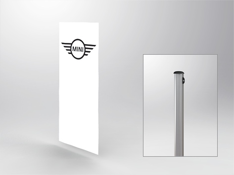 Flag for flagpole (vertical) with plastic hook, screen print, material 100% polyester.