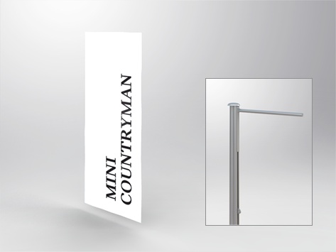 Flag for flagpole with cantilever-arm and plastic hook. Tunnel for max. 40mm Ø cantilever-arm at the top, screen print, Material 100% Polyester.