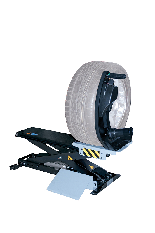 Stationary wheel balancing machine with automatic quick action clamp for balancing passenger car wheels with a rim diameter of up to 32 inches and a wheel weight of 85 kg. The automatic quick action clamp ensures that the wheel is fitted precisely. Tightening torque monitoring ensures that every wheel can be balanced under the same conditions.